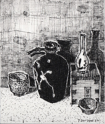 For example, in the heavy/light industrial, fishing ports of Kobe, I often go around second-hand shops searching for unassuming old sake bottles/cups to paint and draw not only because there cheap and interesting subject matter but tend to be passionately made and seemingly imbued with all the memories humanity can muster in household, tavern and restaurant conversations whilst give me great pleasure in touching such objects, whilst looking into them with an intense gaze that might unravel something unseen through forensic rhopography (looking at the over looked) and that kind of observation for an artist is not new.